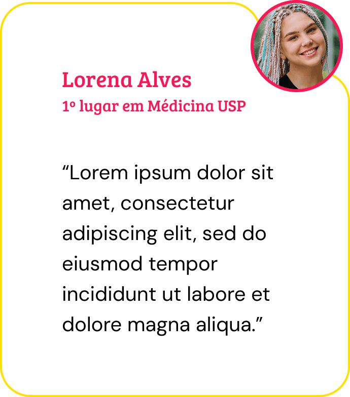 Aulas ao vivo em grupos pequenos ou em mentoria individual, com suporte direto da professora que já ajudou milhares de alunos a conquistar vagas em Medicina, Engenharia e outros cursos de alta concorrência.